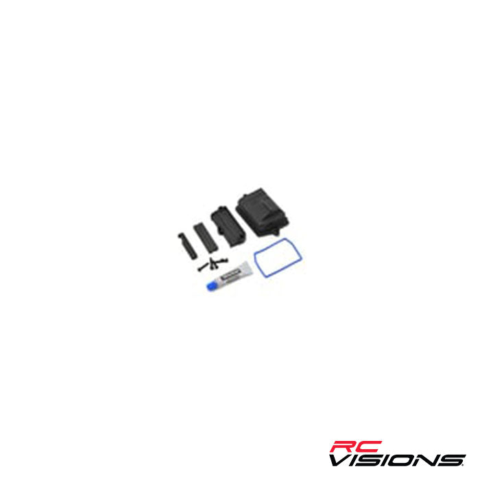 This is a replacement Traxxas X-Maxx Receiver Box Set, including a sealed box, wire cover, foam pads, silicone grease and four 3x15mm mounting screws.