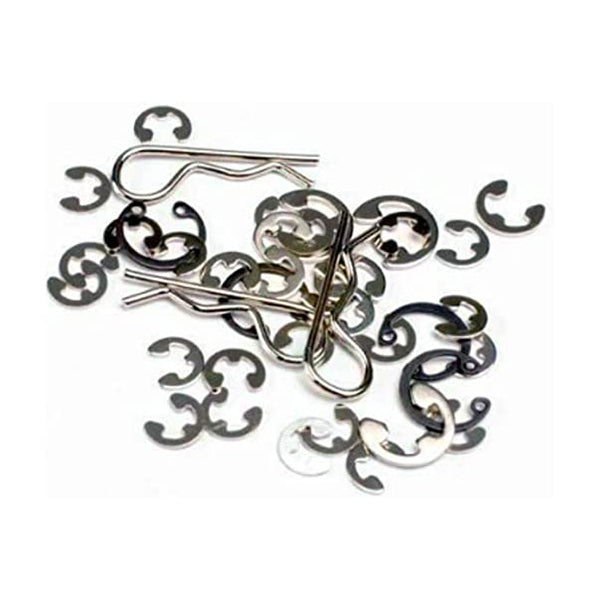 This is a pack of misc Traxxas E-clip, C-rings and body clips for the Traxxas Revo monster trucks.