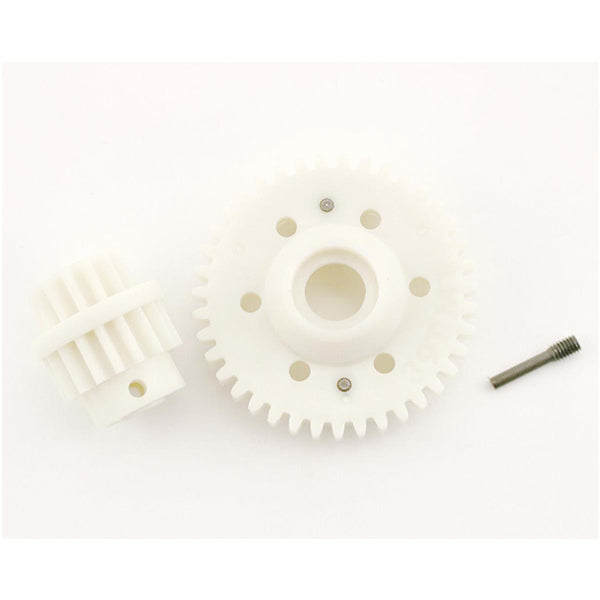 This is a replacement set of two speed standard ratio gear set for the Traxxas Revo. Only Revo offers the ability to custom tailor the 2-speed gear ratios for either wide or close ratio gear shifts. The close ratio set reduces the engine’s RPM change between first and second gear for nearly seamless shifting and speed, even in the corners! Choose wide ratio gear set to allow Revo to run in first gear longer through the infield, shifting later for a big run down the straightaway.