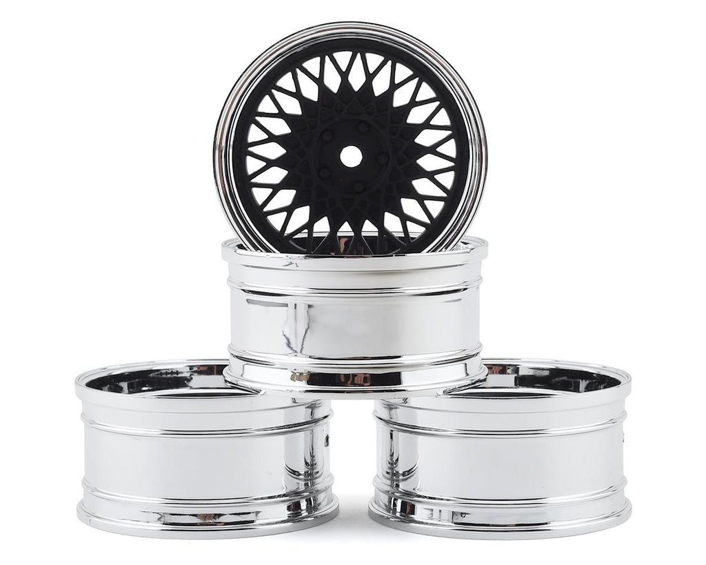 MST 501 Offset Changeable Wheel Set. These wheels feature a classic webbed pattern and molded in 5 lug bolt details. The design allows you to setup the wheel with a +3, +5, +7 or +9 offset to fit a variety of bodies, and setup the stance to create the look you want on your ride. Simply clock the wheel face inside the rim and glue in place. Package includes four wheels, four serrated wheel nuts and four adhesive foam strips.