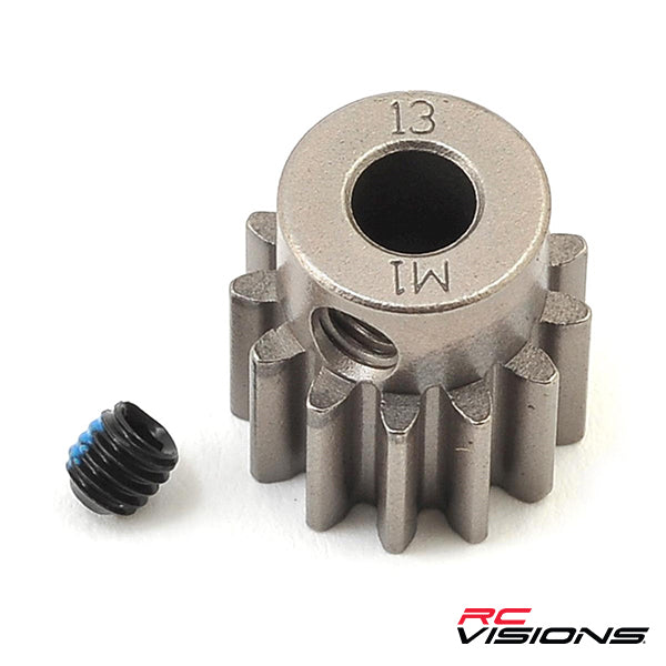 Traxxas Hardened Steel Mod 1.0 Pinion Gear. This durable hardened steel pinion gear has a 5mm bore and a Mod 1 tooth pitch, making it compatible with a variety of applications. The gear is available in a variety of tooth count options, please select the specific gear you want from the pull down list above. Package includes pinion gear and set screw.