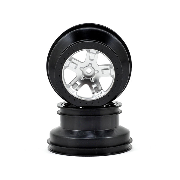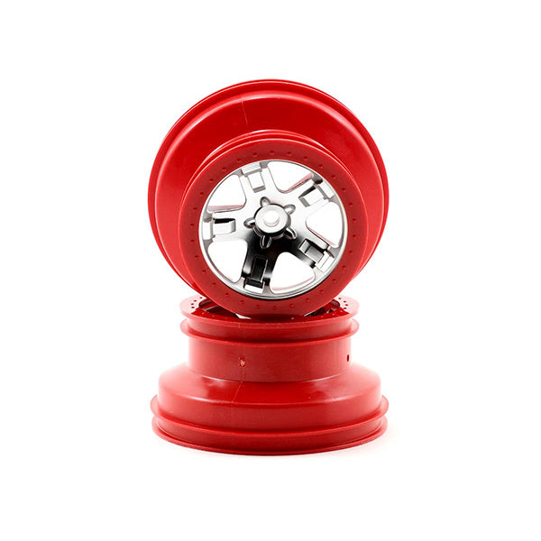 BEADLOCK CHROME WHEELS FOR SLASH & SLAYER: Add instant "beadlock" style to your Slash and Slayer with Traxxas' latest option wheels. The beadlock trim is molded in color for good looks that last, while the satin-chrome center section provides the perfect contrast. To preserve the authentic stance and handling of Traxxas' popular short-course trucks, the wheels are