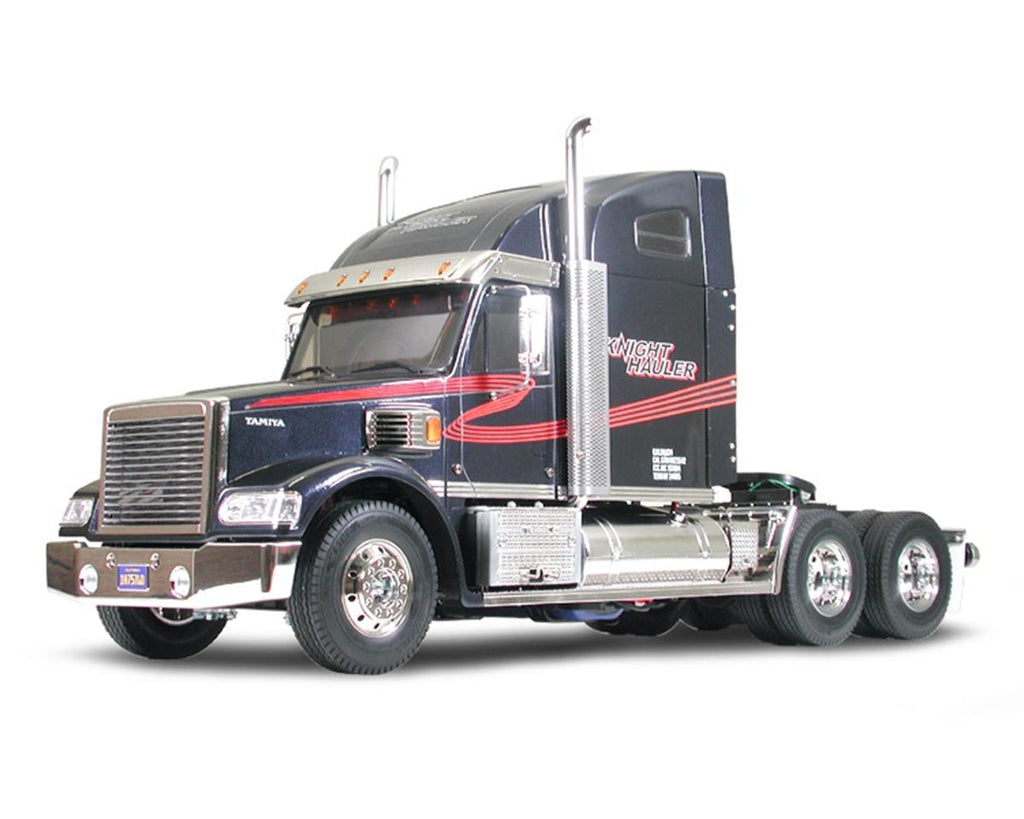 This 1/14 scale R/C Tractor Trucks Item features an originally designed truck body. Hood, large roof spoiler, interior, and lights (clear orange parts), which have been artistically rendered in exquisite detail. Grill, tank, exhaust and steps have been beautifully rendered with metal plated parts. Kit includes stickers and 540 motor. 7.2V battery pack and R/C system are sold separately.