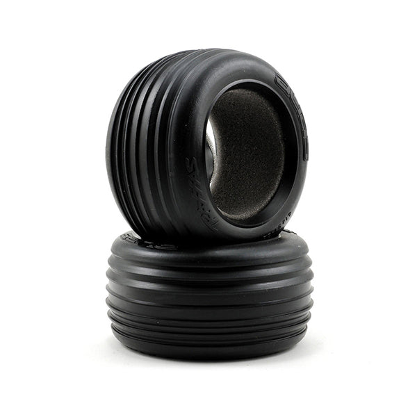 This is a pair of Traxxas Ribbed front tires with foam inserts. Whether racing on a track or tearing across a back lot, the front ribbed tires are the perfect choice. They feature a non-directional design for no-hassle, no-worry mounting. The 2.8" ribbed front tire incorporates deep grooved ribs that dig into soft loamy surfaces for superior control. This tire combination is ideal for use on grass, loamy dirt, sand, and any other loose surface. The ribbed front tires feature a super soft rubber compound that supplies exceptional grip on asphalt and other hard packed surfaces. For a versatile stadium truck tire that is at home on the track or in the back yard get the Traxxas ribbed front tires.