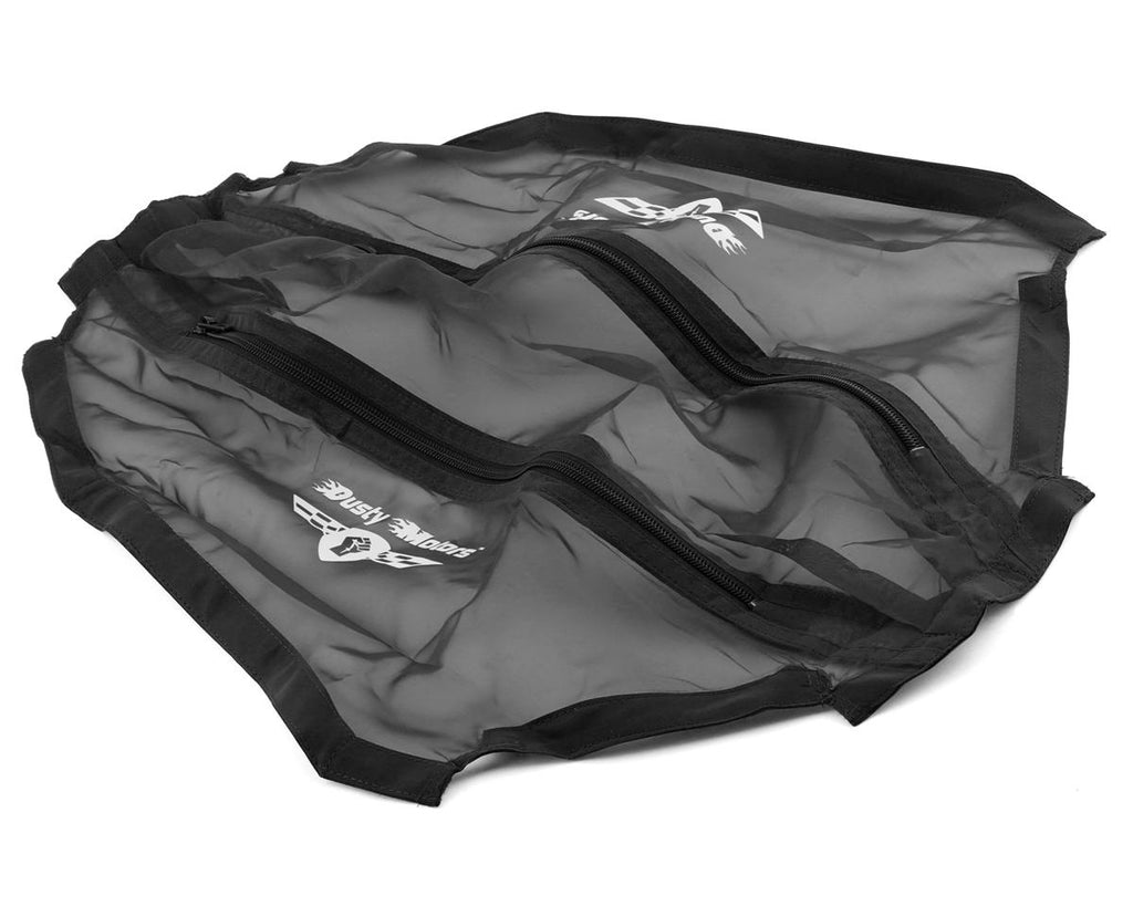 The Dusty Motors Traxxas XRT Protection Cover is a premium quality shroud that offers protection against dust and water splashes. It is custom designed for Traxxas XRT and is hand-made to ensure high quality. The shroud has a single zipper access opening that simplifies connecting/disconnecting batteries and accessing the power switch, eliminating the need to remove the shroud every time you need access. It is crafted from a breathable material that is strong, durable, and efficient. The shroud has an open area that makes up more than 50% of the total surface area, allowing for excellent airflow to keep the model electronics cool, while preventing debris, moisture, and other contaminants from entering the chassis.