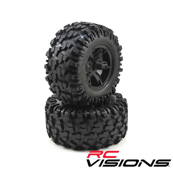 This is a pack of two Traxxas Pre-Mounted Tires and Wheels for use with the X-Maxx equipped with up to 8S power.
